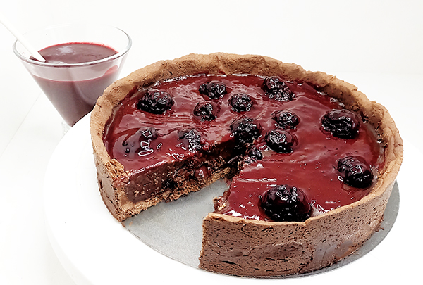 Tarta de chocolate con salsa de zarsamora